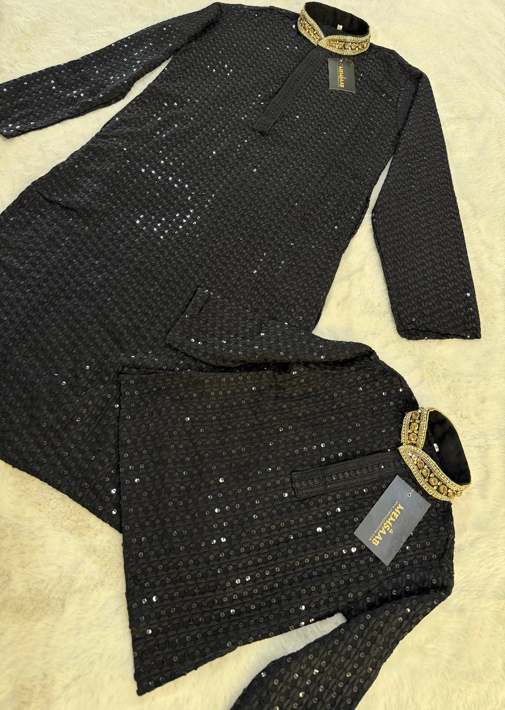 Step into timeless style with this ready-to-wear black kurta and trouser set, designed for sophistication and comfort. Crafted from soft, breathable fabric, the kurta features a flattering fit and subtle accents, while the matching trousers offer a clean, modern silhouette. Perfect for special occasions, celebrations, or elevated everyday wear, this ensemble brings classic elegance to any wardrobe.