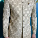 Step into the spotlight with this exquisitely detailed prince coat, adorned with lavish thread and sequin embroidery that captures the light with every movement. Designed for those who dare to stand out, this coat combines opulent craftsmanship with a contemporary silhouette, making it the ultimate choice for weddings, galas, and grand celebrations. Unleash your confidence and redefine elegance in this show-stopping piece.